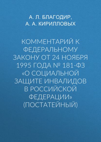 Комментарий к Федеральному закону от 24 ноября 1995 г. № 181-ФЗ «О социальной защите инвалидов в Российской Федерации» (постатейный; издание третье, переработанное и дополненное)