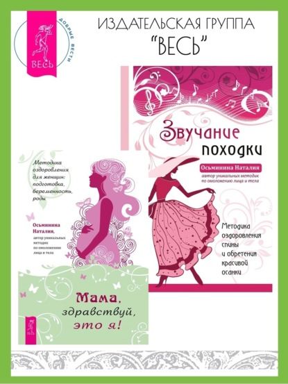 Мама, здравствуй, это я! Методика оздоровления для женщин: подготовка, беременность, родыКаждая женщина, планирующая беременность, хочет выносить и родить здорового ребенка. Но некоторые забывают, что здоровье младенца напрямую зависит от физического состояния матери. И даже незначительные проблемы, например, в опорно-двигательном аппарате или с малым тазом могут привести к родовой травме.Наталия Осьминина уверена, чтобы малыш появился на свет легко и без осложнений, женщине нужно готовить свое тело заранее – еще до беременности, а также выполнять поддерживающие упражнения во время вынашивания ребенка.В этой книге автор представляет уникальную остеопатическую методику, направленную на избавление от проблем опорно-двигательного аппарата, восстановление осанки и улучшение статики позвоночника. Особенность упражнений заключается в том, что можно самостоятельно работать с собственным телом как женщинам, планирующим беременность и беременным, так и молодым мамам. Использование авторской методики позволит легко перенести беременность и родить здорового ребенка, а также быстро восстановиться после родов.Звучание походки: Методика оздоровления спины и обретения красивой осанкиКрасивая осанка и легкая походка преображают любого человека, и наоборот, какими бы прекрасными внешними данными человек не обладал, если он сутулится и тяжело ходит, то добавляет себе лишние годы и теряет свою привлекательность.Наталия Осьминина – автор бестселлеров по омоложению лица и тела – в своей новой работе уделяет особое внимание теории и практике правильной осанки и походки.Из книги вы узнаете, что эталонная осанка – это основа гармоничной походки и показатель внутреннего здоровья, а не только внешней красоты. И что согласно биомеханике, все движения нашего тела, в частности походка, связаны с осанкой, а она в свою очередь – с дыханием и обновлением клеток.Поэтому, чтобы обрести красивую осанку и притягивающую взгляды походку, необходим комплексный подход, и начать следует с дыхания. Благодаря подробной авторской методике и большому количеству поясняющих иллюстраций, вы легко разберетесь в теме. Практические упражнения, направленные на оздоровление организма, укрепление мышц опорно-двигательного аппарата, растяжку, обретение гибкого тела и стоп подойдут как новичкам, так и продолжающим.
