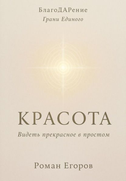 Проект БлагоДАРение. Серия «Грани Единого»«Красота»Видеть прекрасное в простом«Красота — это не то, что мы видим, а то, как мы видим»Что, если красота заключается не в особых местах и предметах, а в вашем взгляде на мир? Что, если способность видеть прекрасное — это не дар избранных, а забытое умение, которое можно вернуть?Эта книга — не руководство по эстетике, а приглашение к трансформации восприятия. Здесь вы откроете для себя красоту движения и увядания, научитесь видеть священное в простом, поймёте, почему быстротечность делает прекрасное ещё более ценным.Мастер ведёт читателя через девять граней единого понимания: от великой слепоты к очевидному и далее к осознанию всего мира как храма красоты. Каждая глава — это практика пробуждения внутреннего созерцателя, способного превращать обыденность в чудо одним лишь своим присутствием.Красота не ждёт в музеях — она здесь, сейчас, в этом моменте. Нужно лишь научиться её видеть.