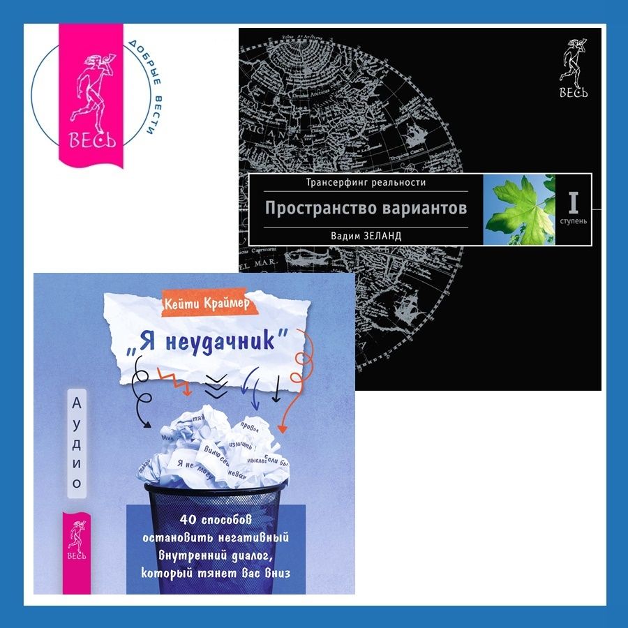 Сборник аудиокниг: «Я неудачник». 40 способов остановить негативный внутренний диалог, который тянет вас вниз + Трансерфинг реальности. Ступень I: Пространство вариантов.В вашей голове проживает весьма неприятный тип. Он вечно недоволен, а порой – и агрессивен. Такой, как есть, вы ему совершенно не нравитесь, и в то, что вы способны измениться, он не верит. Он внушает чувство безнадежности и уговаривает вас опустить руки. И при этом в выражениях не стесняется.Это ваш внутренний критик.Если бесконечные мрачные мысли мешают вам жить нормальной жизнью – осознавать свою ценность, чувствовать себя уверенно, завязывать близкие отношения, достигать целей на работе или заниматься творчеством, пришло время указать этому товарищу на дверь. Перед вами дерзкая книга, в которой Кейти Краймер – психотерапевт с большим опытом – предлагает действенный, исполненный юмора подход к проблеме негативного мышления. Авторские упражнения для преодоления токсичных мыслей основаны на различных подходах поведенческой терапии, практиках осознанности, сострадания к себе и радикального принятия.Эта книга обеспечит вас необходимыми инструментами и пробудит мотивацию и отвагу – чтобы избавиться от вредной привычки ругать себя и вернуть себе свою жизнь.О чем эта книгаВначале психотерапевт Кейти Краймер рассказывает, что из себя представляет негативный внутренний диалог и какое влияние он оказывает на нас и нашу жизнь. А также поясняет, почему даже самые злые и уничижительные суждения внутреннего критика кажутся нам объективными и логичными.Книга состоит из 40 глав, в каждой из которых – с большим юмором – разобраны самые распространенные негативные убеждения: «я не могу…», «я должен…» «я всегда…», «меня точно ждет провал, так зачем пытаться», «я ничего не добился», «мир несправедлив» и так далее. Для каждой такой мысли вы получите противоядие, которое не позволит внутреннему критику и дальше отравлять ваш внутренний мир. Вы научитесь творчески преобразовывать эти убеждения в реалистичное восприятие себя и окружающей действительности, развивая доброту к себе и другим, самообладание и умение присутствовать в настоящем моменте.Почему книгу стоит прочитатьПрочитав книгу, вы узнаете, как…– Принимать реальность, не драматизируя.– Найти свой темп жизни и перестать зависеть от чужого мнения.– Отпустить прошлые неудачи, которые мешают вернуться к значимым целям.– Научиться проявлять сострадание к самому себе.– Сместить фокус с убеждения «я должен быть успешным» на удовольствие от процесса, ведущего к реализации ваших желаний.– Принять несовершенство – свое и других людей, и отказаться от непродуктивного черно-белого мышления.Для кого эта книгаЕсли вам кажется, что с вами что-то не так – вы «неудачник», «ужасный человек», «тот, кого невозможно полюбить» и так далее.Если вы склонны постоянно обвинять себя и ведете перечень своих провалов, к которым обращаетесь при любом удобном случае.Если внутренний критик отвергает все ваши попытки измениться – ведь у вас «никогда ничего не получится».Тогда эта книга для вас.Почему решили издатьНаши мысли вовсе не эфемерны. Они способны определять нашу жизнь – иногда даже в большей степени, чем действия. И они могут быть навязчивыми, ограничивающими и деструктивными. Если вы общаетесь с собой не как с любящ